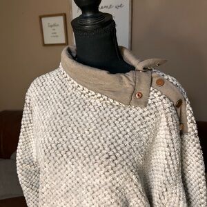 Stay warm and stylish with this cozy cream sweater. Perfect for any casual outing.