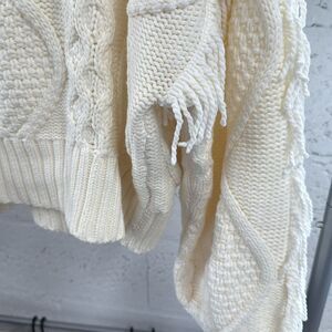 Cozy Cream Cable Knit Sweater - Line & Dot - Size Small Fringe Pullover - NWOT