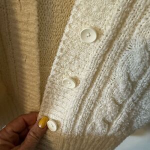 Stay warm and stylish with this cozy cream cardigan sweater. Perfect for layering, this sweater adds a touch of elegance to any outfit.