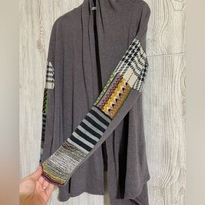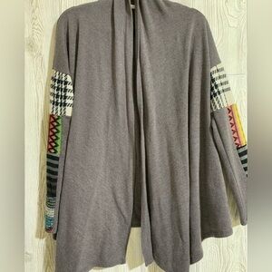 Cozy Drape Front Cardigan With Patchwork Sleeves by 12PM by Mon Ami Size Large