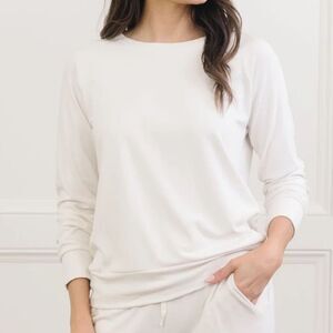 Cozy Earth Bamboo Pullover Crewneck Sweatshirt in Ivory Size Large Loungewear
