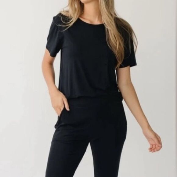 Cozy Earth Bamboo Ribbed Soft crewneck T-shirt Black Size L