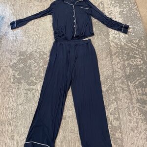 Cozy Earth Women's Bamboo Stretch-Knit Long Sleeve Pajama Set Navy