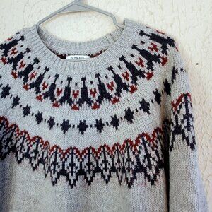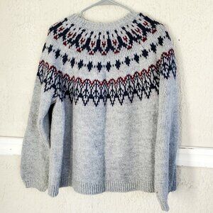 Cozy Fair Isle Blouson-Sleeve Sweater, Old Navy, Women's M, Gray