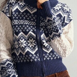 Cozy Fair Isle Print High Neck Zip up Chunky Cable Knit Cardigan