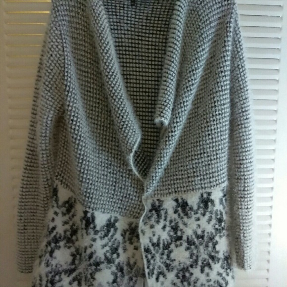 Everyone is wearing these furry sweaters!So cozy inside!! I just love it but not my size.There are no buttons or belt- it is meant to stay open- unless you want to use your own ~I pinned it together for this picture so it wouldn't slide off the hanger. Like new-Gorgeous & Cannot find anything wrong at all!