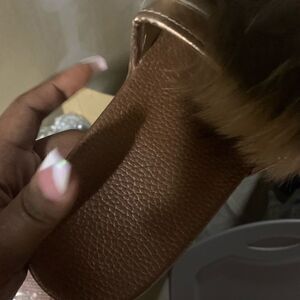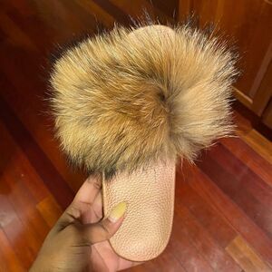 Experience ultimate comfort with these cozy faux fur slippers. Designed for relaxation, these brown slippers add a touch of elegance to your lounging routine.