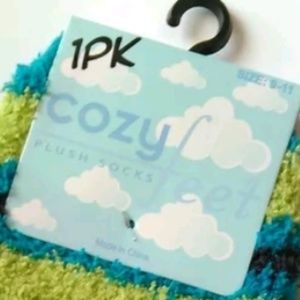 ** Cozy Feet Fuzzy Plush Socks Green Blue Purple