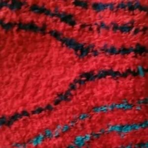 1 Pair Cozy Feet Fuzzy Plush Socks Size 9-11 Red with Cream / Navy / Teal Stripes Washable!