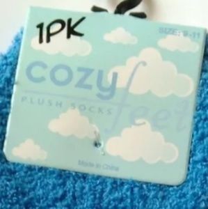 1 Pair Cozy Feet Fuzzy Plush Socks Size 9-11 Solid Blue Washable!
