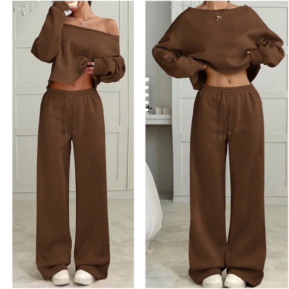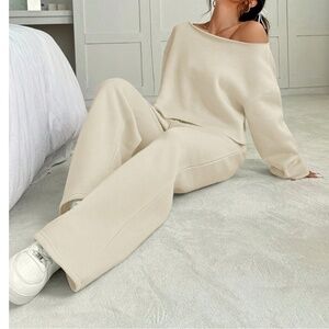Cozy Fleece Oversized Top Stretchy Waist Pants Lounge Set