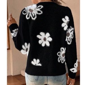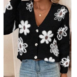 Cozy Floral Print Fuzzy Button Down Oversized Cardigan