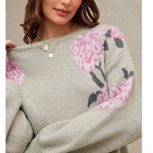 Cozy Floral Print Round Neck Loose Fit Sweater Top