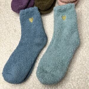 Cozy Fluffy Embroidered Heart Socks 5 Pair. Preowned and only a few worn once. Excellent condition. 5 colors with heart embroidered at ankle.
