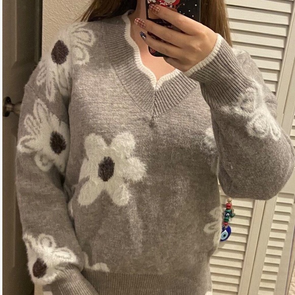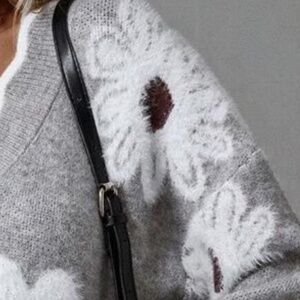 Cozy Fuzzy V neck Floral Print Loose Fit Sweater Top