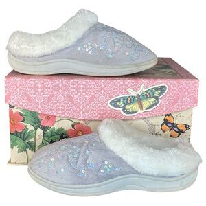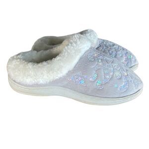 Cozy Fuzzy Womens Slippers with Sequin Detail Slip On Style Size Small 5 - 6