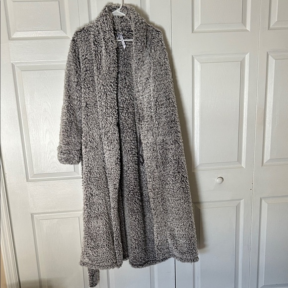 Stay warm with this cozy gray fuzzy robe. Perfect for lounging. L/XL