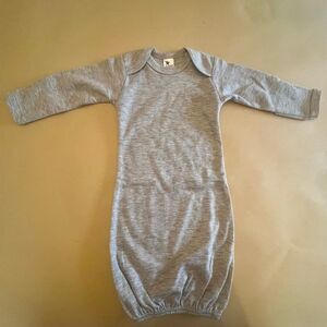 Cozy Gray Baby Pajama Set, sleep sack (0-6mo) and sleep gown (0-3mo).