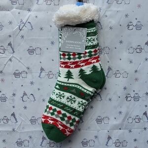 Cozy Holiday Knit Stocking with Green and Red Accents