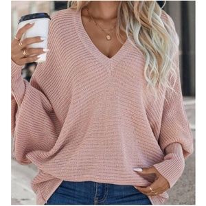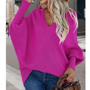 Cozy Hot Pink Batwing Sleeve Sweater Top