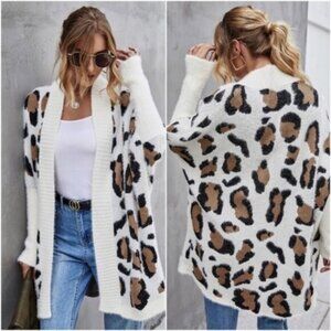 Cozy Ivory leopard dolman sleeve Cardigan Oversized