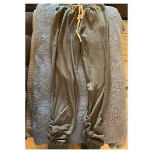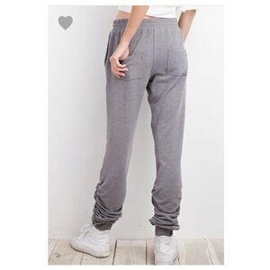 Ultra Comfy Cozy Brushed Sweatpants featuring Hip pockets and an elastic waistband with a drawstring for an effortless fit. They also feature a nice ash gray color & finished off with a tapered shirring gathered hem detailing on each leg.