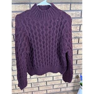 Cozy Knit Sweater Mock Neck Textured Pullover Plum Purple Boxy Fit