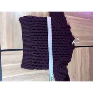Indulge in the plush comfort of this plum purple knit sweater, a textural masterpiece that invites warmth and style into your wardrobe. The intricate knit pattern creates a visually stunning effect, while the mock neck adds a touch of sophistication and coziness. Designed with a relaxed, boxy fit, this sweater drapes effortlessly, offering both comfort and a modern silhouette. The rich, deep purple hue exudes elegance and versatility, making it a standout piece for any occasion. Perfect for layering on a crisp autumn day, adding a touch of warmth to a casual weekend brunch, or elevating your evening ensemble with its unique texture and color.