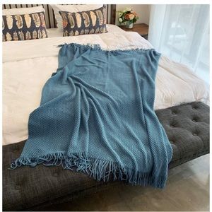 Cozy Knit Turquoise Teal Fringe Warm Blanket/Shawl for Couch/Bedroom/Dorm/Patio