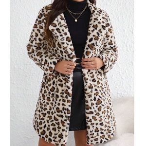 Cozy Leopard Print Open Front Teddy Jacket Coat