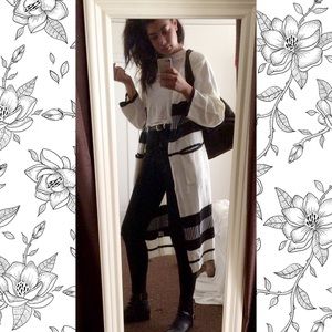 Cozy Long black/white Knit Cardigan.