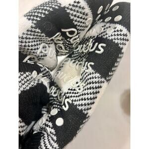 Black and White lumberjack pattern. With an elevated level of softness, Pudus provides comfort at every step, with extra-fluffy sherpa lining and adjustable sizes. Wrap your feet and legs in comfort and style, whether you are returning from a long day at work, waking up from a beauty sleep, cozying up on a cold winter’s day, or dancing in your living room.