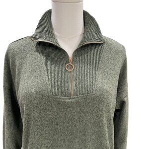 Cozy Olive Green Quarter Zip Pullover Sweater Soft Knit Minimalist Loungecore