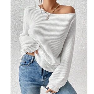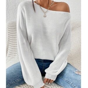 Cozy One Shoulder Lantern Sleeve Sweater Top