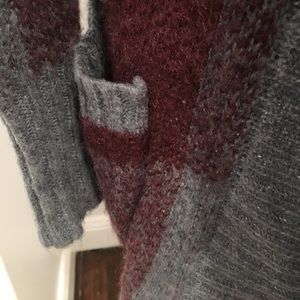 Cozy heather and burgundy cardigan with pockets. Like new.