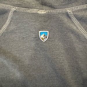 Cozy, outdoorsy pullover with a funnel neckline and kangaroo pocket. Features contrast stitching and a small mountain patch logo on the chest. Perfect for layering on hikes, travel, or everyday casual wear.
