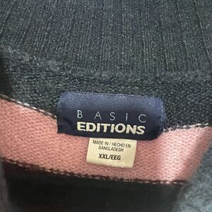 Super soft acrylic blend sweater features a multicolored stripe pattern. Pair with work pants or jeans for a casual look.