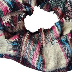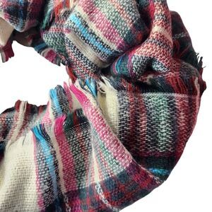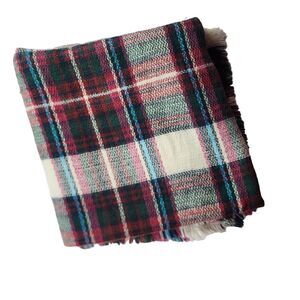 Cozy Oversized Plaid Blanket Scarf Wrap Fringe Trim