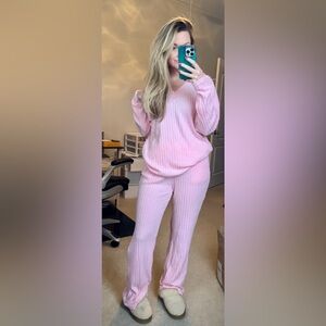 Relax in style with this cozy pink ribbed lounge set. Perfect for a comfortable night in or casual day out. NWT