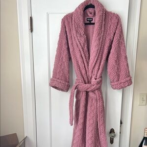 Wrap yourself in comfort with this cozy and soft pink mid-calf robe. Perfect for lounging and relaxation.