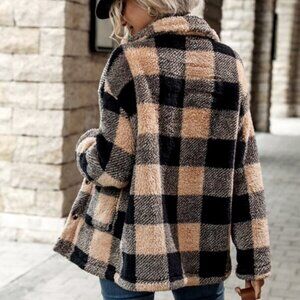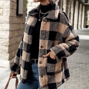 Cozy Plaid Button up Teddy Oversized Jacket Shacket