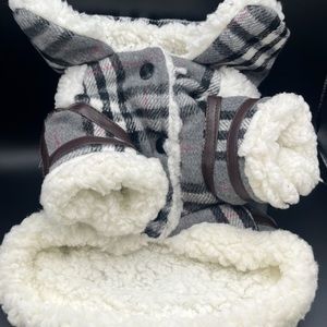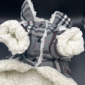 Crafted with a high-quality composite plaid fabric on the outer surface, this coat is not only soft but also durable, ensuring long-lasting use. The inner surface features thick lamb wool, providing extra warmth and coziness for your pet.