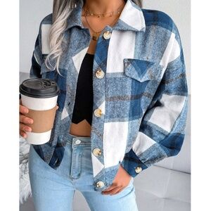 Cozy Plaid Print Button Down Loose Fit jacket Shacket