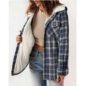 Cozy Plaid Print Teddy Lined Button Jacket Shacket