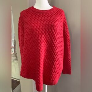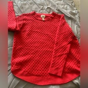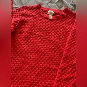 Cozy Red Knit Sweater, Super Soft Petite Large Rounded Bottom, Preloved