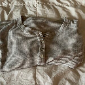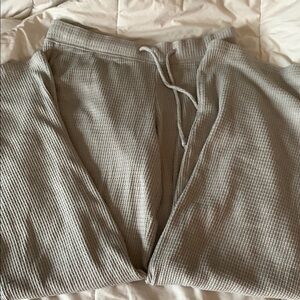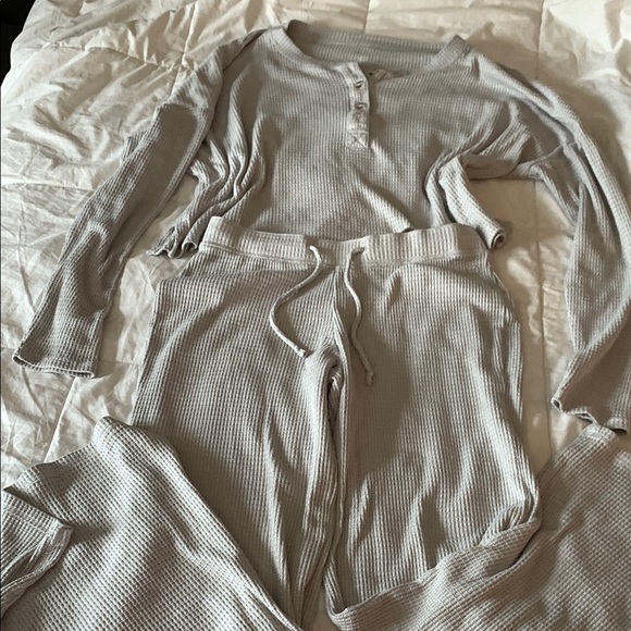 Comfortable ribbed lounge set in a soft gray color. Perfect for relaxing at home.