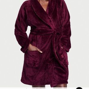 Extra-cozy robe meant for pampering yourself, featuring a shawl collar, tie waist, and front pockets.