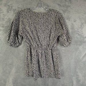 Cozy Rozy Womens Blouse Black Animal Print Short Sleeve Puff Elastic Waist S New