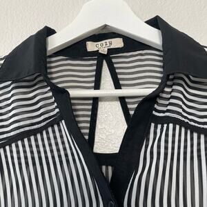 Cozy S&S Womens Black Stripe Blouse Sleeveless Lightweight Officewear Size Small
