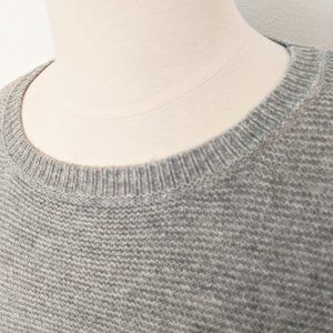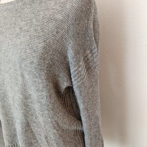 This is a great medium weight sweater with high end knit details on the sides. Slightly longer length in the back.